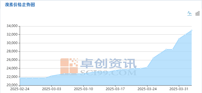 4月1 - 2日,溴素均價(jià)從32000元/噸漲至34000元/噸,上漲2000元/噸。目前國(guó)內(nèi)主流成交價(jià)格在33000 - 35000元/噸,雖市場(chǎng)價(jià)格稍顯雜亂,但整體呈穩(wěn)步上行趨勢(shì)。從市場(chǎng)走向預(yù)估,短線內(nèi)溴素價(jià)格將持續(xù)大幅上漲,保守估計(jì)主流價(jià)會(huì)達(dá)34000元/噸,4月價(jià)格或能攀升至42000元/噸。
